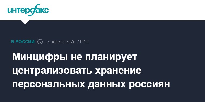 Минцифры не планирует централизовать хранение персональных данных россиян