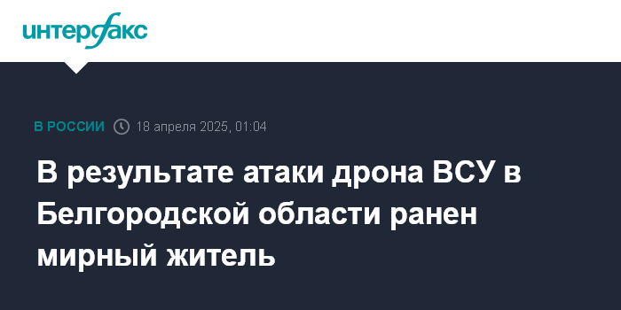 В результате атаки дрона ВСУ в Белгородской области ранен мирный житель