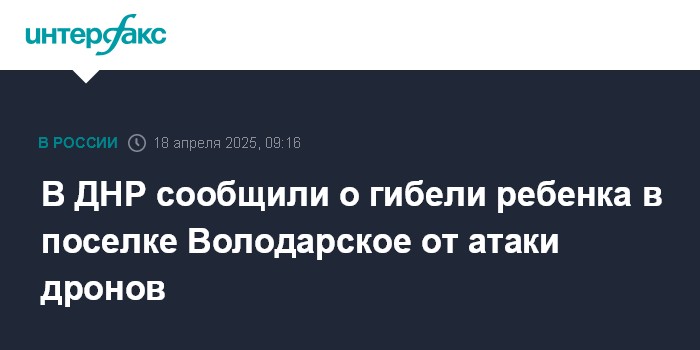 Москва. 18 апреля. INTERFAX.RU - Ребенок погиб в результате удара беспилотника в Донецкой народной республики, сообщил глава региона Денис Пушилин.