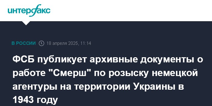 "Центр общественных связей ФСБ России на официальном сайте Ведомства в разделе "История", в рубрике "Архивные материалы" размещает цифровые копии рассекреченных документов из архива Управления ФСБ России по Омской области о работе сотрудников Управления контрразведки "Смерш" 4-го Украинского фронта Красной Армии по розыску агентуры немецкой военной разведки, выявлению деятельности контрразведывательных органов противника и очищению советских вооруженных сил и гражданского населения от активных пособнических, предательских и националистических элементов в ноябре 1943 года",- говорится в сообщении.
