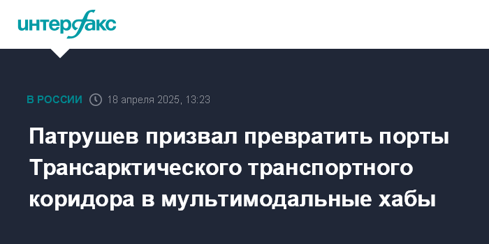 "Порты Трансарктического коридора должны стать "точками роста" для приморских регионов. Их необходимо трансформировать в современные, мультимодальные транспортно-логистические хабы, развитие которых должно быть тесно увязано с комплексным развитием прилегающих территорий и шельфовой зоны", - сказал Патрушев в Архангельске на совещании по вопросу развития портовой инфраструктуры в интересах обеспечения функционирования Трансарктического коридора.