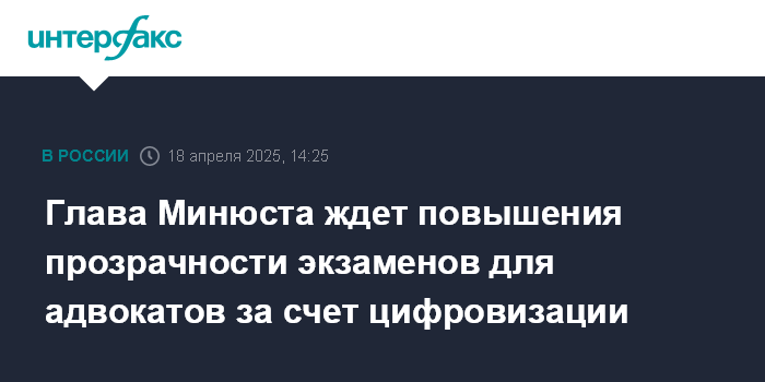 Глава Минюста ждет повышения прозрачности экзаменов для адвокатов за счет цифровизации