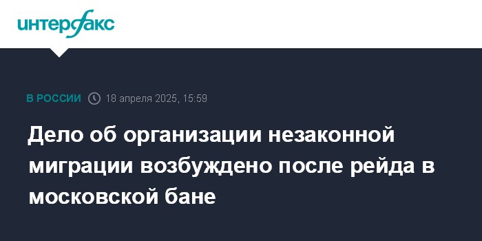 Москва. 18 апреля. INTERFAX.RU - Московская полиция возбудила уголовное дело об организации незаконной миграции в отношении трех выходцев из ближнего зарубежья по итогам рейда в банном комплексе на севере столицы, сообщила официальный представитель МВД России Ирина Волк.
