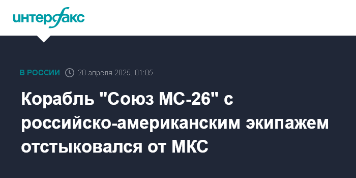 Корабль "Союз МС-26" с российско-американским экипажем отстыковался от МКС