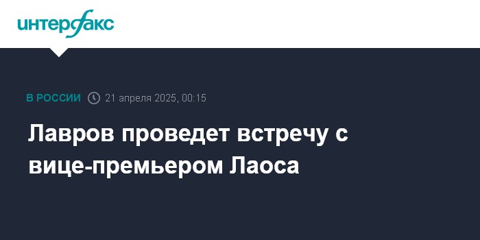 Москва. 21 апреля. INTERFAX.RU - Глава МИД РФ Сергей Лавров проведет встречу с заместителем премьер-министра Лаосской народно-демократической республики Салемсаем Коммаситом, который будет находиться в России с рабочим визитом.