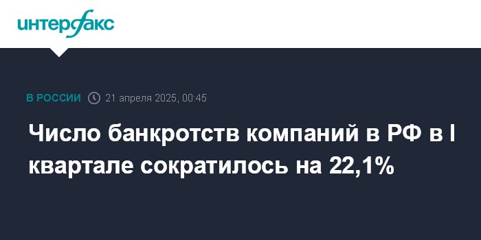 Число банкротств компаний в РФ в I квартале сократилось на 22,1%