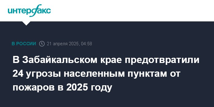 Москва. 21 апреля. INTERFAX.RU - Специалисты в этом году предотвратили 24 угрозы от лесных пожаров населенным пунктам Забайкальского края. Об этом сообщил глава МЧС России Александр Куренков.