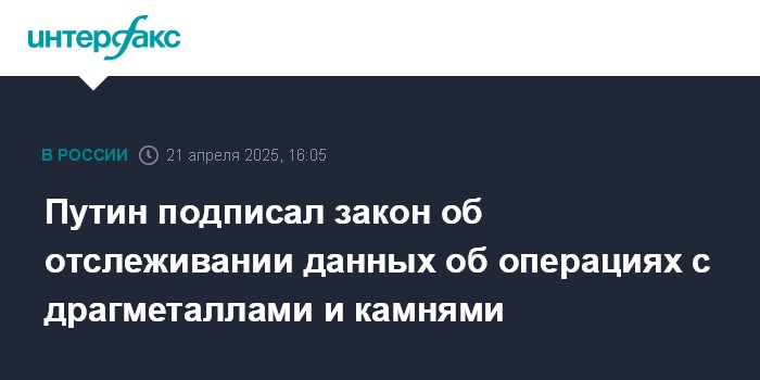 Путин подписал закон об отслеживании данных об операциях с драгметаллами и камнями