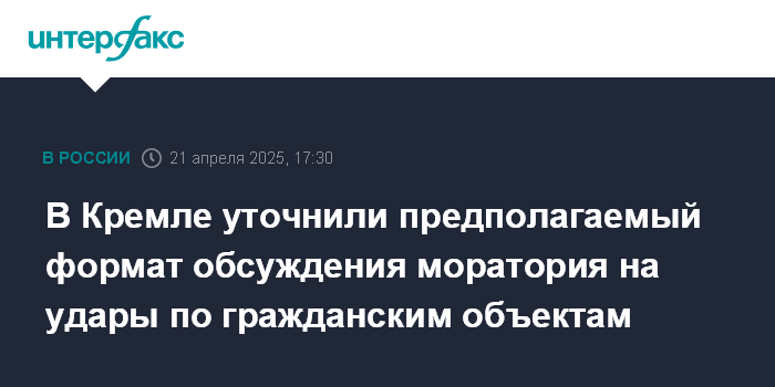 В Кремле уточнили предполагаемый формат обсуждения моратория на удары по гражданским объектам