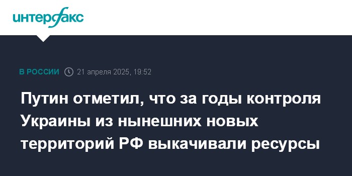 Путин отметил, что за годы контроля Украины из нынешних новых территорий РФ выкачивали ресурсы
