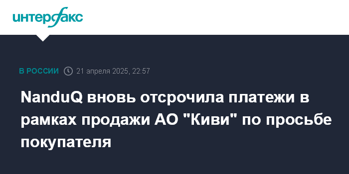 NanduQ вновь отсрочила платежи в рамках продажи АО "Киви" по просьбе покупателя