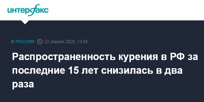 Распространенность курения в РФ за последние 15 лет снизилась в два раза
