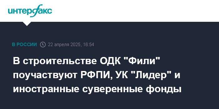 В строительстве ОДК "Фили" поучаствуют РФПИ, УК "Лидер" и иностранные суверенные фонды