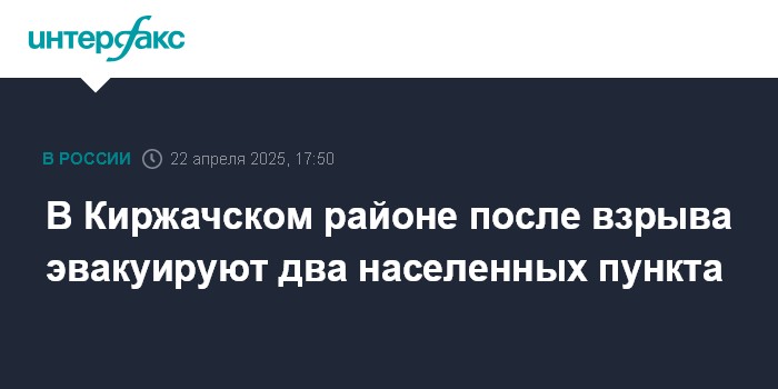 Москва. 22 апреля. INTERFAX.RU - В Киржачском районе Владимирской области после взрыва эвакуируют населенные пункты Барсово и Мирный, сообщает администрация района. Местных жителей призывают соблюдать меры безопасности и сохранять спокойствие.