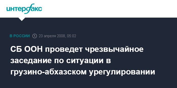 Москва. 23 апреля. ИНТЕРФАКС - Чрезвычайное заседание Совета Безопасности ООН по поводу ситуации в Абхазии состоится в среду в Нью-Йорке.