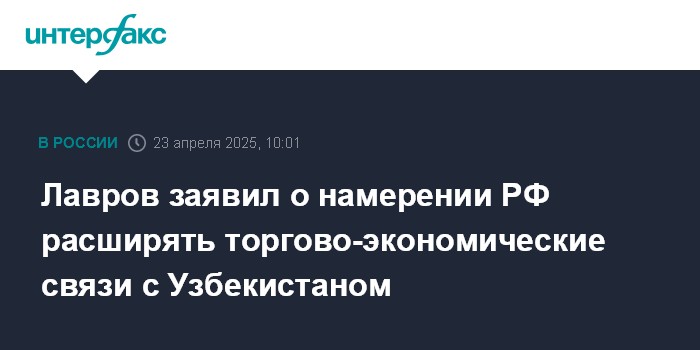 Москва. 23 апреля. INTERFAX.RU - Торговые и экономические связи России и Узбекистана развиваются, намечены пути их расширения, заявил глава МИД РФ Сергей Лавров.