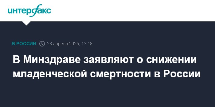 Москва. 23 апреля. INTERFAX.RU - Показатель младенческой смертности в РФ по итогам первого квартала текущего года составил 3,8 промилле (1 промилле - 0,1 процента), сообщила заместитель министра здравоохранения России Евгения Котова на конгрессе "Право на жизнь".