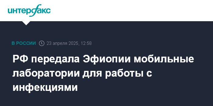 РФ передала Эфиопии мобильные лаборатории для работы с инфекциями