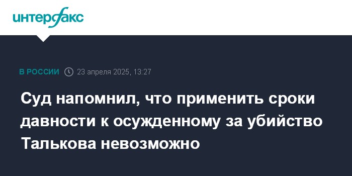 Суд напомнил, что применить сроки давности к осужденному за убийство Талькова невозможно