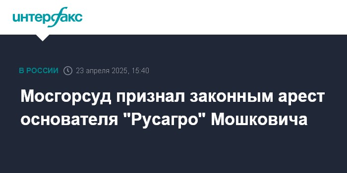 Мосгорсуд признал законным арест основателя "Русагро" Мошковича