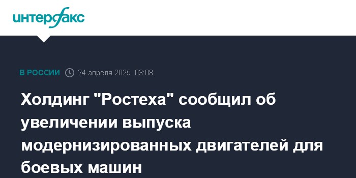 Москва. 24 апреля. INTERFAX.RU - Холдинг "Высокоточные комплексы" (входит в "Ростех") увеличил выпуск усовершенствованных дизельных двигателей УТД-29 для бронетранспортеров, боевых машин пехоты и десанта.