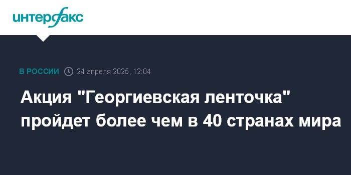 "Сегодня мы не просто запускаем акцию, мы запускаем эстафету благодарности всем тем, кто защищал и защищает нашу страну (...). Сегодня мы даем старт не только в России, но и в других странах. Прямо сейчас в этот день георгиевскую ленту будут раздавать наши "Волонтеры Победы" в Египте, Тунисе, Турции, Приднестровье. Акция пройдет также в Сербии, Италии, Индии, Аргентине, Перу, на Кипре. Более чем в 40 государствах наши "Волонтеры Победы" будут распространять георгиевские ленты", - сказала Занко на пресс-конференции в четверг.