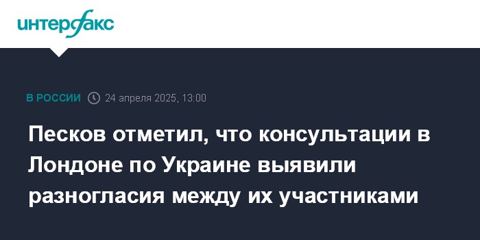 Песков отметил, что консультации в Лондоне по Украине выявили разногласия между их участниками