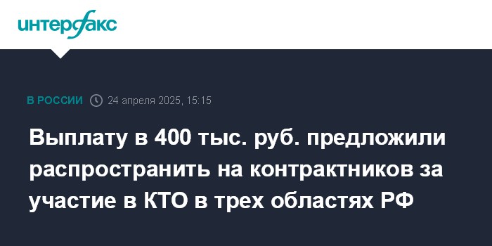 Выплату в 400 тыс. руб. предложили распространить на контрактников за участие в КТО в трех областях РФ
