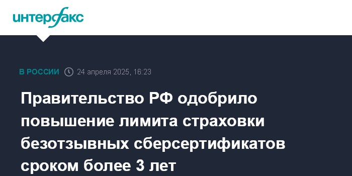 Правительство РФ одобрило повышение лимита страховки безотзывных сберсертификатов сроком более 3 лет