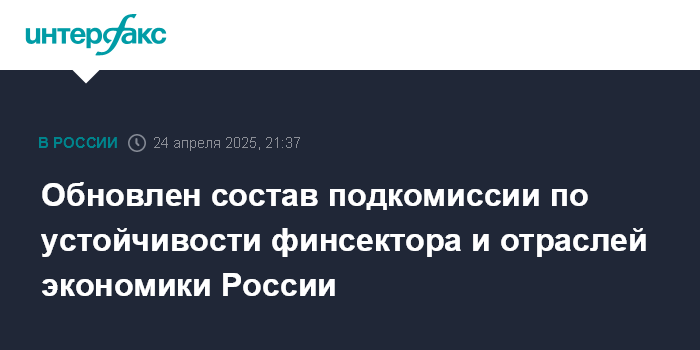 Обновлен состав подкомиссии по устойчивости финсектора и отраслей экономики России