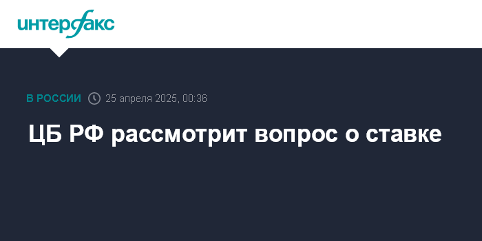 ЦБ РФ рассмотрит вопрос о ставке