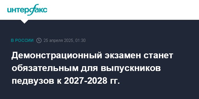 Москва. 25 апреля. INTERFAX.RU - Введение демонстрационного экзамена как обязательной формы государственной итоговой аттестации выпускников всех педагогических вузов планируется к 2027-2028 годам, сообщил министр просвещения РФ Сергей Кравцов.
