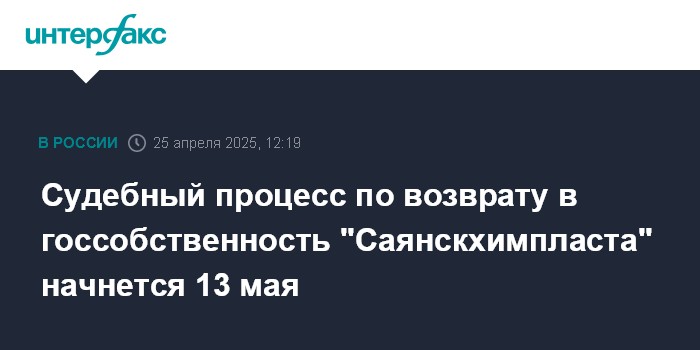 Судебный процесс по возврату в госсобственность "Саянскхимпласта" начнется 13 мая