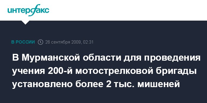Санкт-Петербург. 26 сентября. ИНТЕРФАКС-АВН - Тактическое учение с боевой стрельбой 200-й мотострелковой бригады, в котором принимает участие более 800 единиц боевой и спецтехники, стартовало в субботу на общевойсковом полигоне Печенга в Мурманской области.