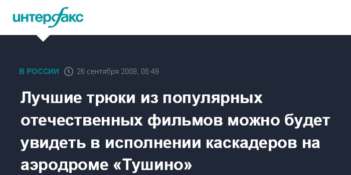 Лучшие трюки из популярных отечественных фильмов можно будет увидеть в исполнении каскадеров на аэродроме «Тушино»