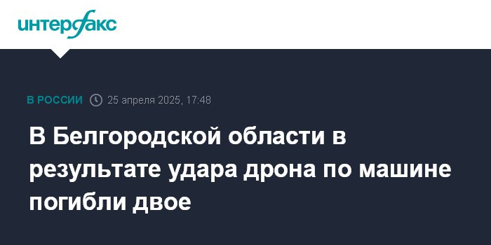 Москва. 25 апреля. INTERFAX.RU - Губернатор Белгородской области Вячеслав Гладков сообщил об атаке украинского дрона на автомобиль в Грайворонском округе, есть погибшие и пострадавший.