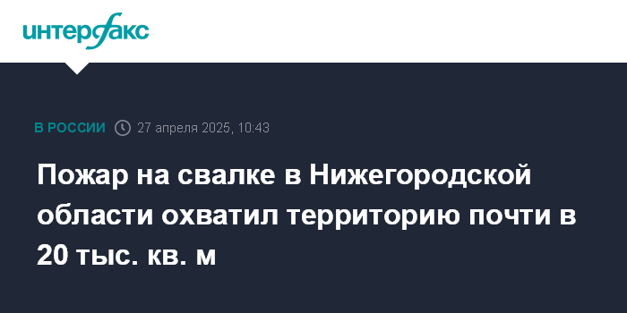 Пожар на свалке в Нижегородской области охватил территорию почти в 20 тыс. кв. м