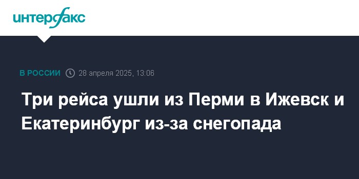 Москва. 28 апреля. INTERFAX.RU - Три самолета, летевшие в Пермь из Казани, Москвы и Сургута, из-за погодных условий в Перми перенаправлены на запасные аэродромы в соседние регионы, сообщает телеграм-канал пермского аэропорта.