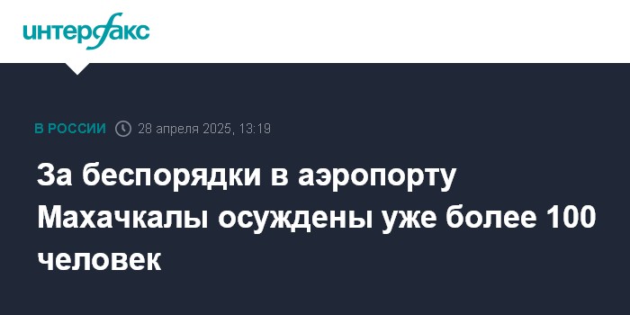 Москва. 28 апреля. INTERFAX.RU - Грачевский районный суд Ставропольского края вынес приговор еще восьмерым жителям Дагестана, обвиняемым по делу о беспорядках в аэропорту Махачкалы в октябре 2023 года, сообщила пресс-служба краевой прокуратуры.