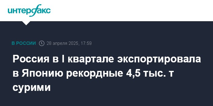 Россия в I квартале экспортировала в Японию рекордные 4,5 тыс. т сурими