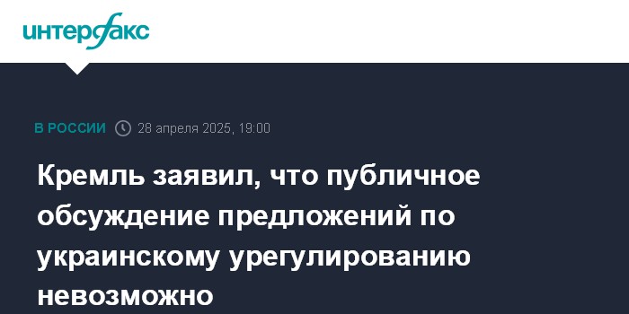 Кремль заявил, что публичное обсуждение предложений по украинскому урегулированию невозможно