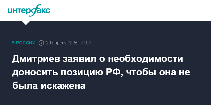 Дмитриев заявил о необходимости доносить позицию РФ, чтобы она не была искажена