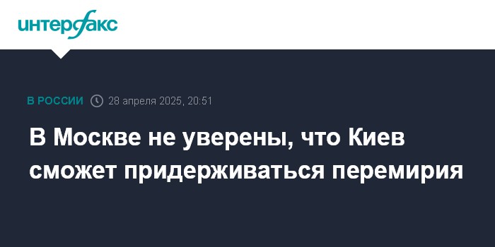Москва. 28 апреля. INTERFAX.RU - Объявление перемирия - это жест доброй воли со стороны РФ, но в Москве не уверены, что Киев сможет проконтролировать в этой ситуации Вооруженные силы Украины, заявили в Кремле.