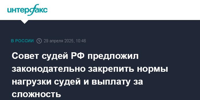 Москва. 29 апреля. INTERFAX.RU - Совет судей РФ разработал законопроект о нормах служебной нагрузки судей и выплате им надбавки за сложность работы.