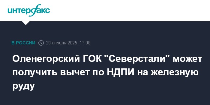 Москва. 29 апреля. INTERFAX.RU - Оленегорский ГОК "Северстали" может получить налоговый вычет по НДПИ для железной руды.