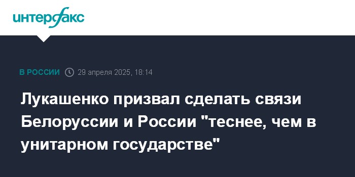 Москва. 29 апреля. INTERFAX.RU - Белоруссия и Россия должны выстроить в Союзном государстве отношения теснее, чем в унитарном государстве, заявил белорусский президент Александр Лукашенко на встрече с президентом России с Владимиром Путиным в Волгограде. Об этом сообщает "Беларусь сегодня".