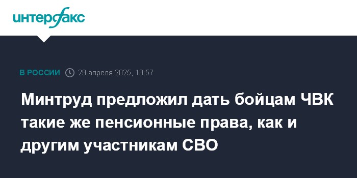 Минтруд предложил дать бойцам ЧВК такие же пенсионные права, как и другим участникам СВО