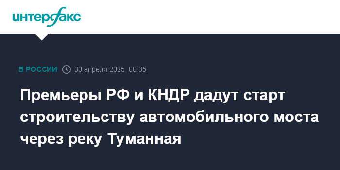 Премьеры РФ и КНДР дадут старт строительству автомобильного моста через реку Туманная