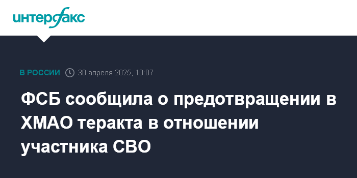 ФСБ сообщила о предотвращении в ХМАО теракта в отношении участника СВО