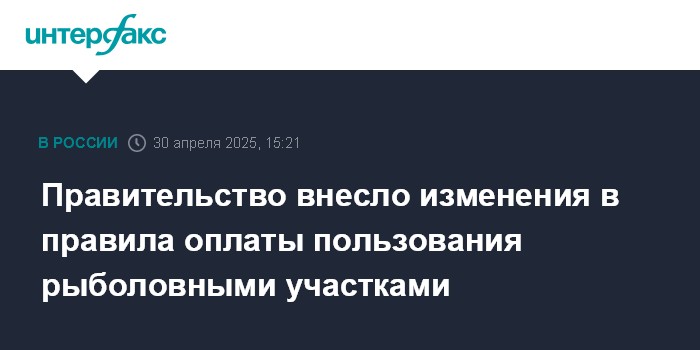 Москва. 30 апреля. INTERFAX.RU - Правительство РФ внесло изменения в правила оплаты пользования рыболовными участками.